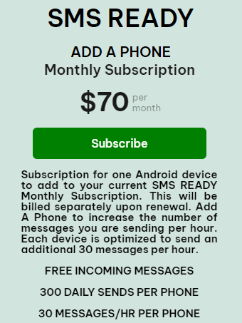 SIMDROID Monthly subscription. Sync your number to send your campaigns using the cloud based app.smsgatez.com. You are purchasing SIMDROID credits. Add up to 5 Android phones per subscription. Unused credits rollover to the next month. SIMDroid Tutorial CLICK HERE